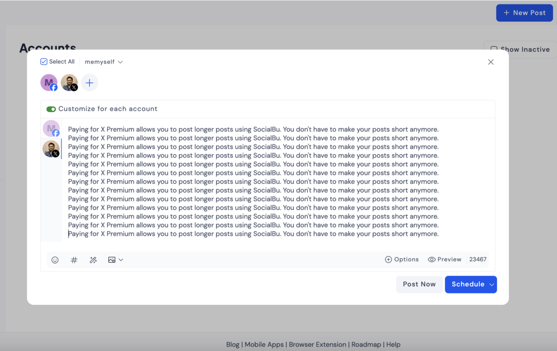 If you pay for X Premium, you can post longer tweets using SocialBu.How to use it: