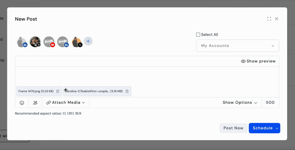 You can now reorder attached media files directly within the post composer by dragging and dropping them. This gives you control and lets you perfect the order of images, videos, or other media files as you compose your post.